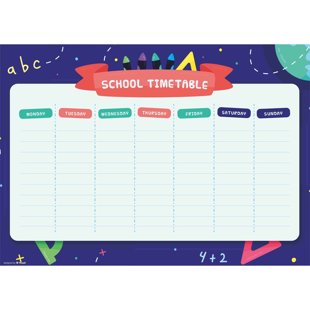 Template jadwal pelajaran di 2020 seni buku kartu kertas pendidikan seni.