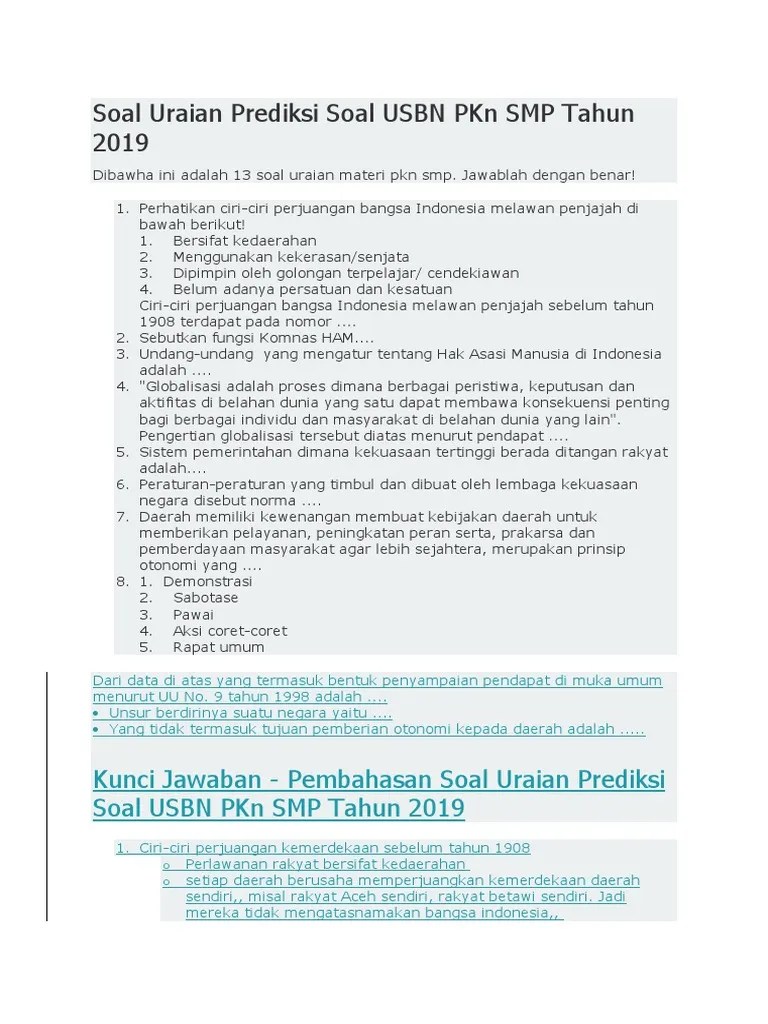 Soal usbn pkn smp dan kunci jawaban.